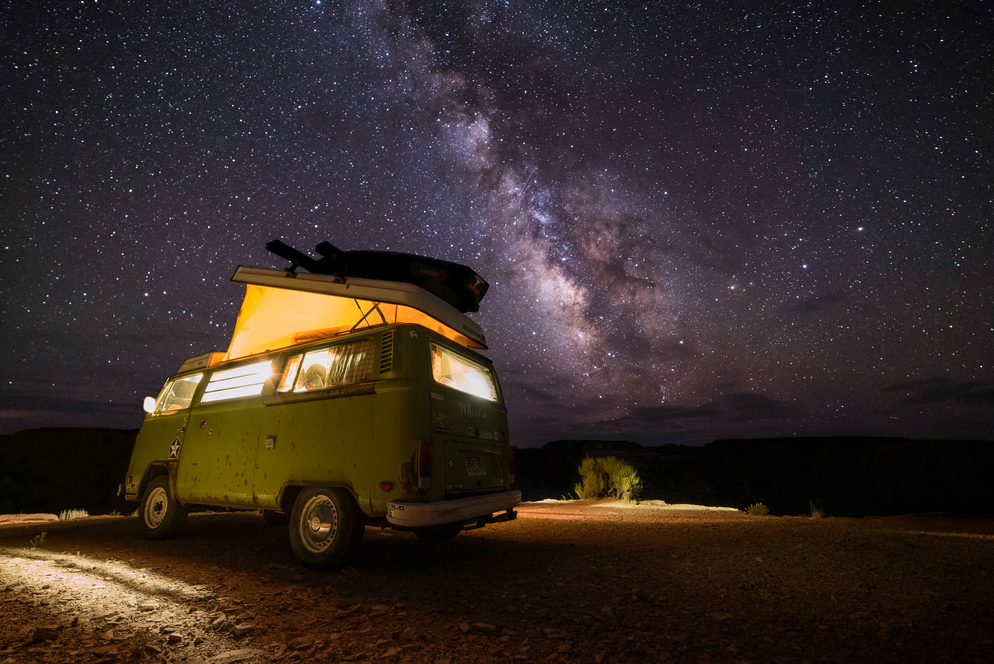 A couple weeks ago our good friends and their pup came with us on our last adventure with Magnolia. It happened to be a beautifully clear night, and we camped alone on the cliff’s edge in the San Rafael Swell. The Wedge, also known as the “Little Grand Canyon,” has amazing views by itself, but it also happened to be the night of a meteor shower. As our friend Dan ran around taking pictures, the rest of us watched the shooting stars and talked about life. While we were setting up camp and traveling throughout the day, Dan was taking photos and videos as a last reminder of what our freedom machine means to us– we were amazed by his captures: